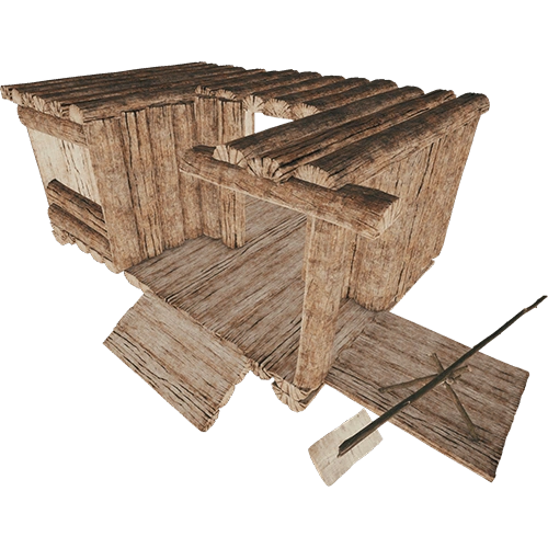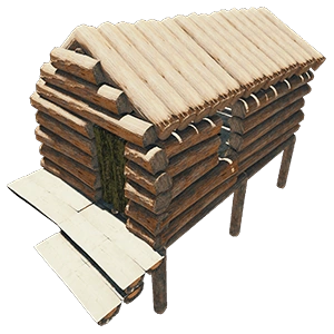 | Малый по размеру дом, но все же дом, а не просто укрытие. Имеет одно окно и дверь. Через дверь могут заходить людоеды. Лучше всего в постройках, а именно в этой, закрывать окна отдельными стенами, чтобы людоеды не смогли напасть на вас. Четвертая в книге выживания, в категории убежищ. | 13 бревен | |