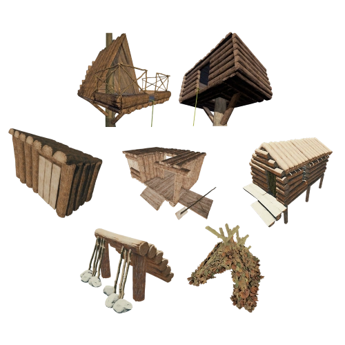 | Дом на дереве | Обычный дом, только на дереве. Можно залезть в середину с помощью веревки. Пятый в книге выживания, в категории убежищ. | 31 бревно
